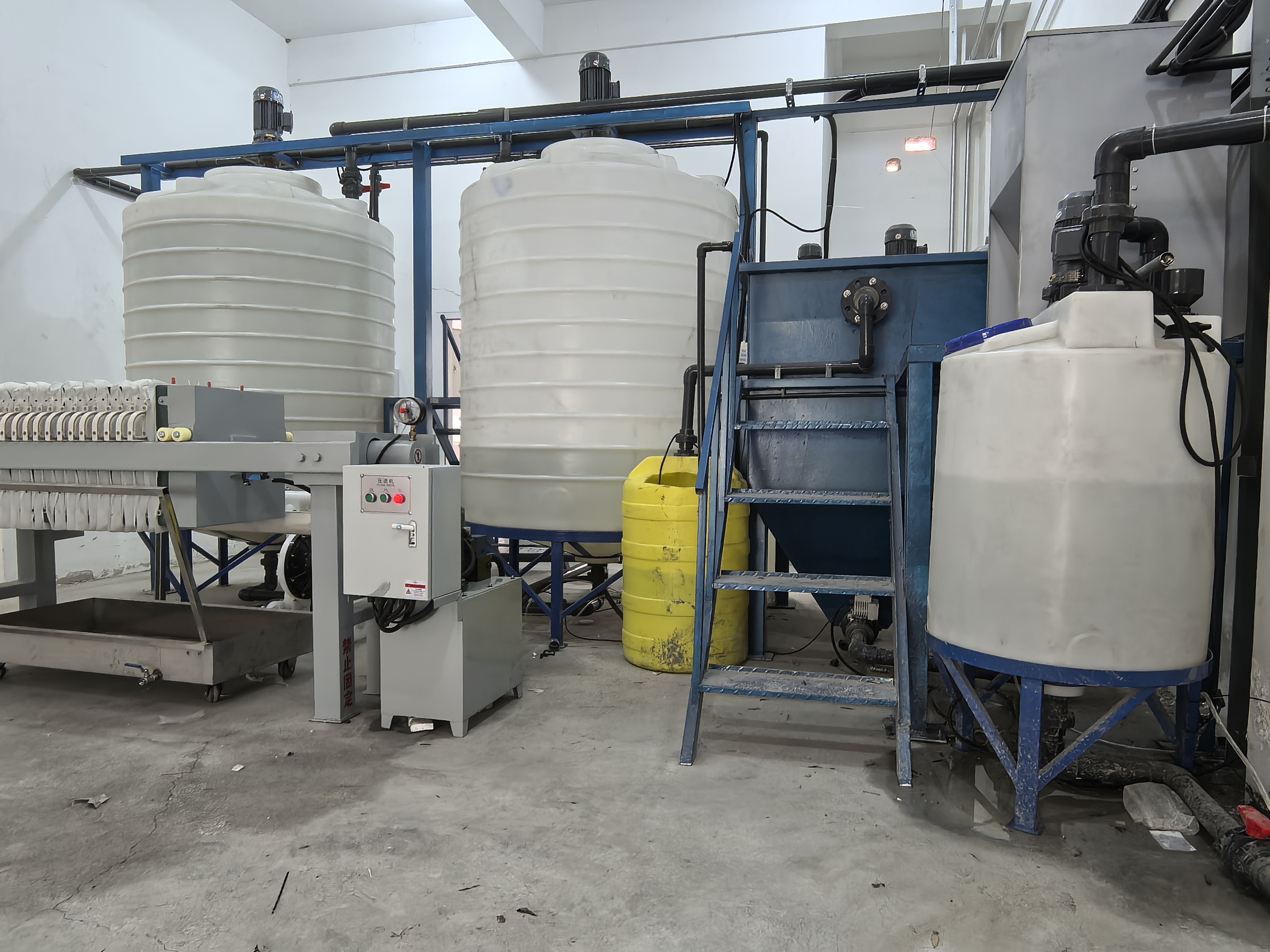 化学沉淀池: 投加化学药剂(如石灰、硫化物)使溶解性污染物(如重金属离子、磷酸盐)转化为不溶性沉淀物,然后通过沉降或过滤去除。